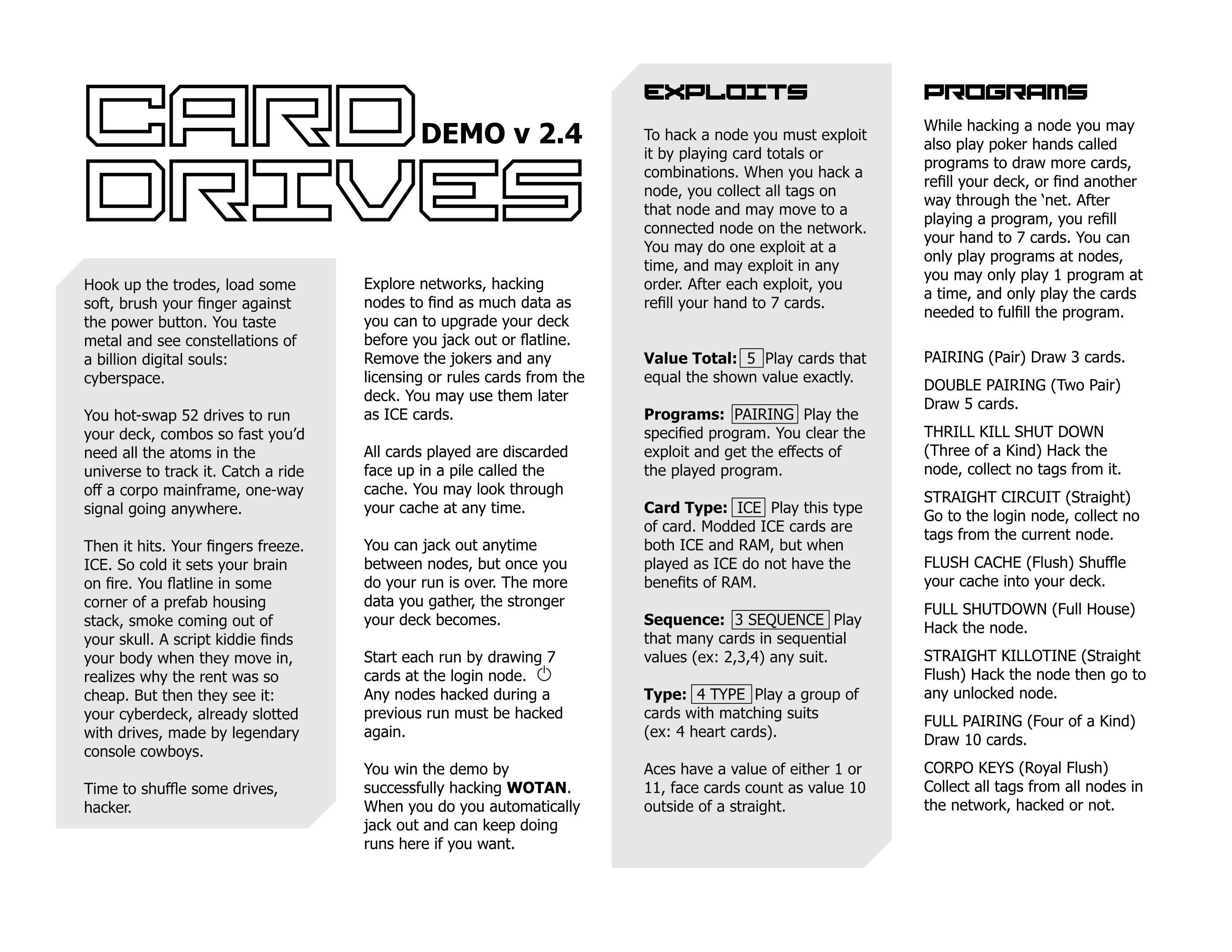 Did some light improvements to the rules text, just stating that if you really really want to you can keep playing the demo if you successfully hack WOTAN.